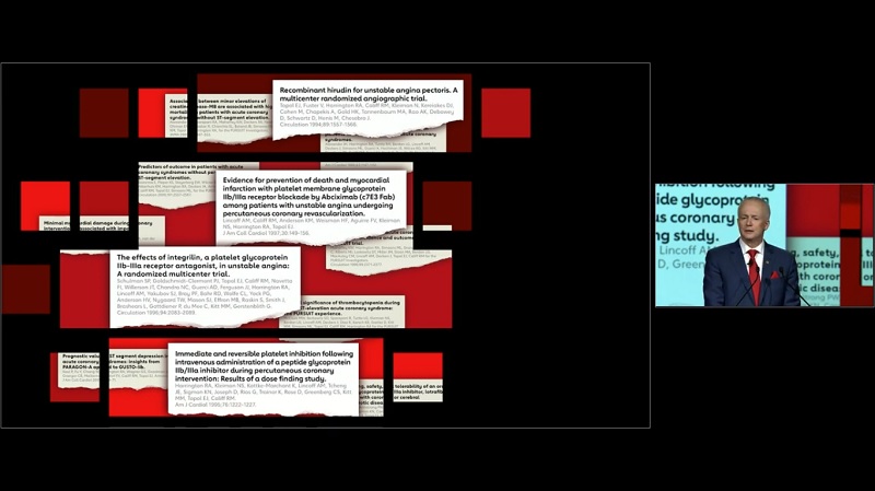 AHA President Dr. Robert Harrington discusses the importance of using scientific evidence to guide medicine in an address Sunday at Scientific Sessions in Philadelphia. (AHA/Phil McCarten)